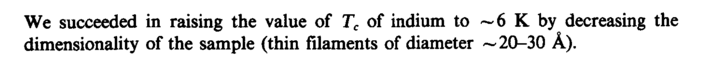 of indium to -6 К by decreasing the dimensionality of the sample (thin filaments of diameter ~ 20-30 A).
