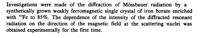 Investigations were made of the diffraction of Mossbauer radiation by a synthetically grown weakly ferromagnetic single crystal of iron borate enriched with 57Fe to 85%. The dependence of the intensity of the diffracted resonant radiation on the direction of the magnetic field at the scattering nuclei was obtained experimentally for the first time.