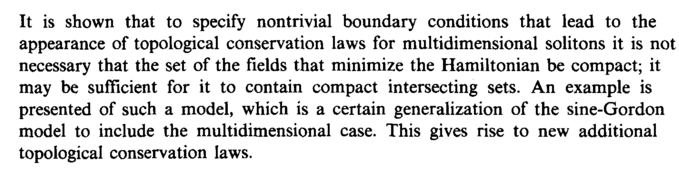 It is shown that to specify nontrivial boundary conditions that lead to the appearance of topological conservation laws for multidimensional solitons it is not necessary that the set of the fields that minimize the Hamiltonian be compact; it may be sufficient for it to contain compact intersecting sets. An example is presented of such a model, which is a certain generalization of the sine-Gordon model to include the multidimensional case. This gives rise to new additional topological conservation laws.