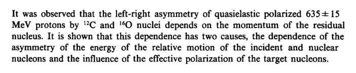 It was observed that the left-right asymmetry of quasielastic polarized 635 ±15 MeV protons by 12C and 160 nuclei depends on the momentum of the residual nucleus. It is shown that this dependence has two causes, the dependence of the asymmetry of the energy of the relative motion of the incident and nuclear nucleons and the influence of the effective polarization of the target nucleons.