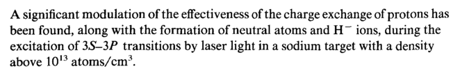 A significant modulation of the effectiveness of the charge exchange of protons has been found, along with the formation of neutral atoms and H" ions, during the excitation of 3S-3P transitions by laser light in a sodium target with a density above 1013 atoms/cm3.