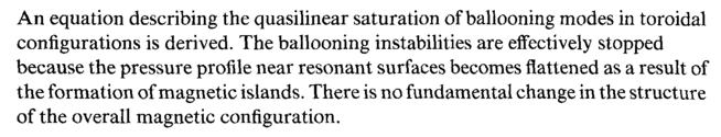 An equation describing the quasilinear saturation of ballooning modes in toroidal configurations is derived. The ballooning instabilities are effectively stopped because the pressure profile near resonant surfaces becomes flattened as a result of the formation of magnetic islands. There is no fundamental change in the structure of the overall magnetic configuration.