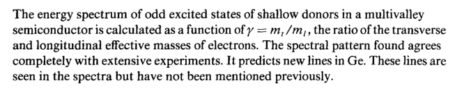 The energy spectrum of odd excited states of shallow donors in a multivalley semiconductor is calculated as a function of γ = mt /ти the ratio of the transverse and longitudinal effective masses of electrons. The spectral pattern found agrees completely with extensive experiments. It predicts new lines in Ge. These lines are seen in the spectra but have not been mentioned previously.