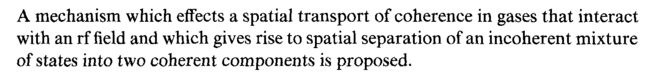 A mechanism which effects a spatial transport of coherence in gases that interact with an rf field and which gives rise to spatial separation of an incoherent mixture of states into two coherent components is proposed.