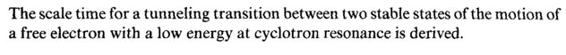 The scale time for a tunneling transition between two stable states of the motion of a free electron with a low energy at cyclotron resonance is derived.