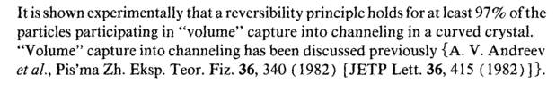 It is shown experimentally that a reversibility principle holds for at least 97% of the particles participating in "volume" capture into channeling in a curved crystal. "Volume" capture into channeling has been discussed previously {Α. V. Andreev etaly Pis'ma Zh. Eksp. Teor. Fiz. 36, 340 (1982) [JETP Lett. 36, 415 (1982)]}.