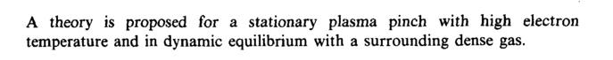A theory is proposed for a stationary plasma pinch with high electron temperature and in dynamic equilibrium with a surrounding dense gas.
