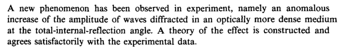 A new phenomenon has been observed in experiment, namely an anomalous increase of the amplitude of waves diffracted in an optically more dense medium at the total-internal-reflection angle. A theory of the effect is constructed and agrees satisfactorily with the experimental data.