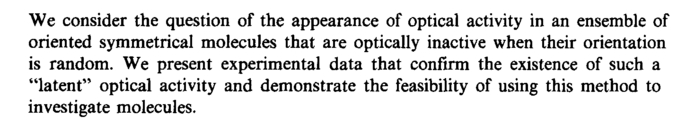 We consider the question of the appearance of optical activity in an ensemble of oriented symmetrical molecules that are optically inactive when their orientation is random. We present experimental data that confirm the existence of such a "latent" optical activity and demonstrate the feasibility of using this method to investigate molecules.