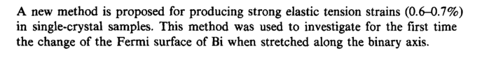 A new method is proposed for producing strong elastic tension strains (0.6-0.7%) in single-crystal samples. This method was used to investigate for the first time the change of the Fermi surface of Bi when stretched along the binary axis.