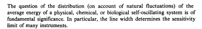The question of the distribution (on account of natural fluctuations) of the average energy of a physical, chemical, or biological self-oscillating system is of fundamental significance. In particular, the line width determines the sensitivity limit of many instruments.