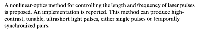 A nonlinear-optics method for controlling the length and frequency of laser pulses is proposed. An implementation is reported. This method can produce high-contrast, tunable, ultrashort light pulses, either single pulses or temporally synchronized pairs.