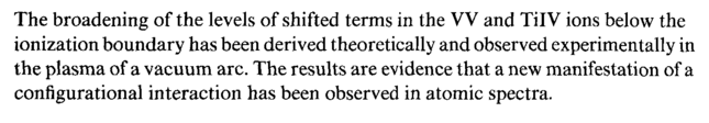 The broadening of the levels of shifted terms in the VV and TilV ions below the ionization boundary has been derived theoretically and observed experimentally in the plasma of a vacuum arc. The results are evidence that a new manifestation of a configurational interaction has been observed in atomic spectra.