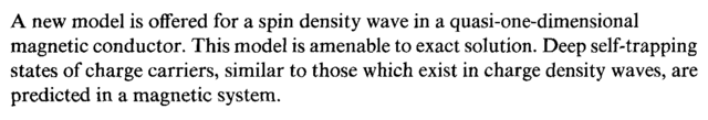 A new model is offered for a spin density wave in a quasi-one-dimensional magnetic conductor. This model is amenable to exact solution. Deep self-trapping states of charge carriers, similar to those which exist in charge density waves, are predicted in a magnetic system.