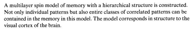 A multilayer spin model of memory with a hierarchical structure is constructed. Not only individual patterns but also entire classes of correlated patterns can be contained in the memory in this model. The model corresponds in structure to the visual cortex of the brain.
