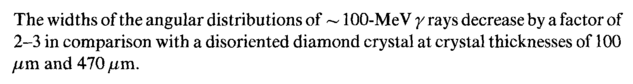 The widths of the angular distributions of ~ 100-MeV γ rays decrease by a factor of 2-3 in comparison with a disoriented diamond crystal at crystal thicknesses of 100 μχη and 470 μιη.