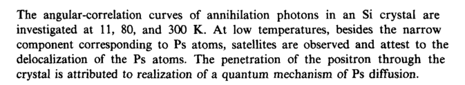 The angular-correlation curves of annihilation photons in an Si crystal are investigated at 11, 80, and 300 K. At low temperatures, besides the narrow component corresponding to Ps atoms, satellites are observed and attest to the derealization of the Ps atoms. The penetration of the positron through the crystal is attributed to realization of a quantum mechanism of Ps diffusion.