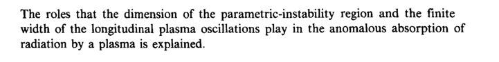 The roles that the dimension of the parametric-instability region and the finite width of the longitudinal plasma oscillations play in the anomalous absorption of radiation by a plasma is explained.