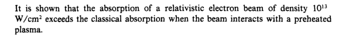 It is shown that the absorption of a relativistic electron beam of density 10u W/cm2 exceeds the classical absorption when the beam interacts with a preheated plasma.