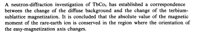 A neutron-diffraction investigation of TbCo5 has established a correspondence between the change of the diffuse background and the change of the terbium-sublattice magnetization. It is concluded that the absolute value of the magnetic moment of the rare-earth ion is conserved in the region where the orientation of the easy-magnetization axis changes.