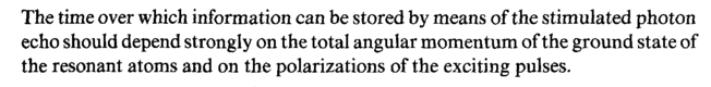The time over which information can be stored by means of the stimulated photon echo should depend strongly on the total angular momentum of the ground state of the resonant atoms and on the polarizations of the exciting pulses.
