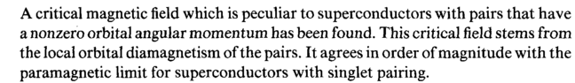 A critical magnetic field which is peculiar to superconductors with pairs that have a nonzero orbital angular momentum has been found. This critical field stems from the local orbital diamagnetism of the pairs. It agrees in order of magnitude with the paramagnetic limit for superconductors with singlet pairing.