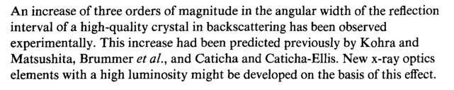 An increase of three orders of magnitude in the angular width of the reflection interval of a high-quality crystal in backscattering has been observed experimentally. This increase had been predicted previously by Kohra and Matsushita, Brummer et ah, and Caticha and Caticha-Ellis. New x-ray optics elements with a high luminosity might be developed on the basis of this effect.