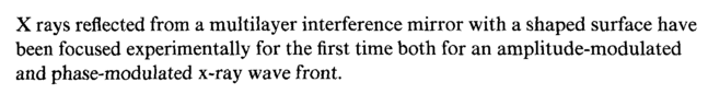 X rays reflected from a multilayer interference mirror with a shaped surface have been focused experimentally for the first time both for an amplitude-modulated and phase-modulated x-ray wave front.