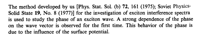 The method developed by us [Phys. Stat. Sol. (b) 72, 161 (1975); Soviet Physics-Solid State 19, No. 8 (1977)] for the investigation of exciton interference spectra is used to study the phase of an exciton wave. A strong dependence of the phase on the wave vector is observed for the first time. This behavior of the phase is due to the influence of the surface potential.