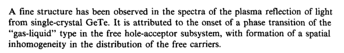 A fine structure has been observed in the spectra of the plasma reflection of light from single-crystal GeTe. It is attributed to the onset of a phase transition of the "gas-liquid" type in the free hole-acceptor subsystem, with formation of a spatial inhomogeneity in the distribution of the free carriers.