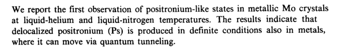 We report the first observation of positronium-like states in metallic Mo crystals at liquid-helium and liquid-nitrogen temperatures. The results indicate that delocalized positronium (Ps) is produced in definite conditions also in metals, where it can move via quantum tunneling.