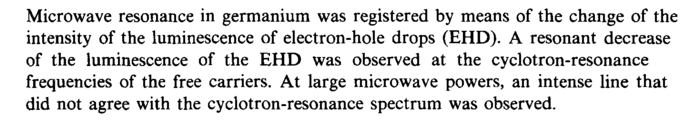 Microwave resonance in germanium was registered by means of the change of the intensity of the luminescence of electron-hole drops (EHD). A resonant decrease of the luminescence of the EHD was observed at the cyclotron-resonance frequencies of the free carriers. At large microwave powers, an intense line that did not agree with the cyclotron-resonance spectrum was observed.