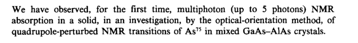We have observed, for the first time, multiphoton (up to 5 photons) NMR absorption in a solid, in an investigation, by the optical-orientation method, of quadrupole-perturbed NMR transitions of As75 in mixed GaAs-AlAs crystals.