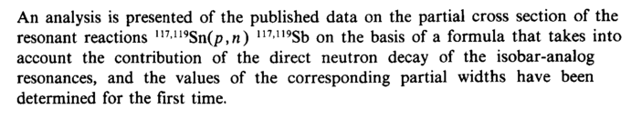 An analysis is presented of the published data on the partial cross section of the resonant reactions 117,119Sn(p,n) 117119Sb on the basis of a formula that takes into account the contribution of the direct neutron decay of the isobar-analog resonances, and the values of the corresponding partial widths have been determined for the first time.