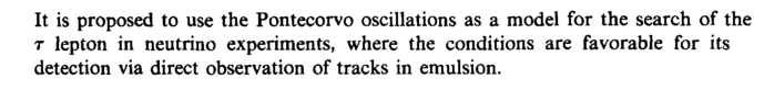 It is proposed to use the Pontecorvo oscillations as a model for the search of the τ lepton in neutrino experiments, where the conditions are favorable for its detection via direct observation of tracks in emulsion.