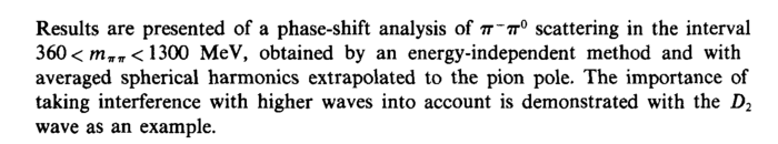 Results are presented of a phase-shift analysis of π~π° scattering in the interval 360 </ηππ< 1300 MeV, obtained by an energy-independent method and with averaged spherical harmonics extrapolated to the pion pole. The importance of taking interference with higher waves into account is demonstrated with the D2 wave as an example.