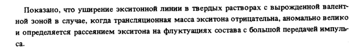 Показано, что уширение экситонной линии в твердых растворах с вырожденной валентной зоной в случае, когда трансляционная масса экситона отрицательна, аномально велико и определяется рассеянием экситона на флуктуация χ состава с большой передачей импульса.