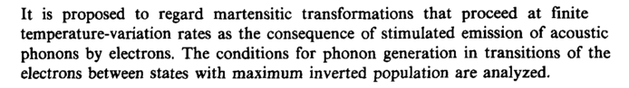 It is proposed to regard martensitic transformations that proceed at finite temperature-variation rates as the consequence of stimulated emission of acoustic phonons by electrons. The conditions for phonon generation in transitions of the electrons between states with maximum inverted population are analyzed.