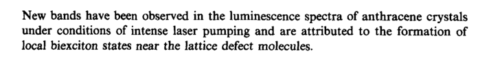 New bands have been observed in the luminescence spectra of anthracene crystals under conditions of intense laser pumping and are attributed to the formation of local biexciton states near the lattice defect molecules.