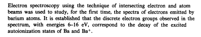 Electron spectroscopy using the technique of intersecting electron and atom beams was used to study, for the first time, the spectra of electrons emitted by barium atoms. It is established that the discrete electron groups observed in the spectrum, with energies 6-16 eV, correspond to the decay of the excited autoionization states of Ba and Ba+.