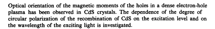 Optical orientation of the magnetic moments of the holes in a dense electron-hole plasma has been observed in CdS crystals. The dependence of the degree of circular polarization of the recombination of CdS on the excitation level and on the wavelength of the exciting light is investigated.
