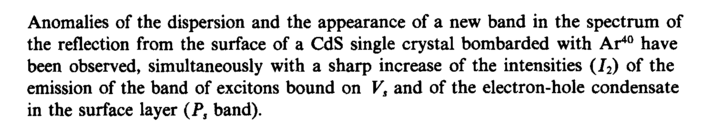 Anomalies of the dispersion and the appearance of a new band in the spectrum of the reflection from the surface of a CdS single crystal bombarded with Ar40 have been observed, simultaneously with a sharp increase of the intensities (J2) of the emission of the band of excitons bound on Vs and of the electron-hole condensate in the surface layer (Ps band).