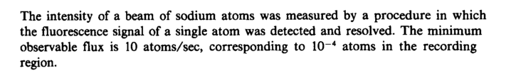 The intensity of a beam of sodium atoms was measured by a procedure in which the fluorescence signal of a single atom was detected and resolved. The minimum observable flux is 10 atoms/sec, corresponding to 10-4 atoms in the recording region.