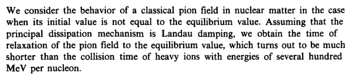 We consider the behavior of a classical pion field in nuclear matter in the case when its initial value is not equal to the equilibrium value. Assuming that the principal dissipation mechanism is Landau damping, we obtain the time of relaxation of the pion field to the equilibrium value, which turns out to be much shorter than the collision time of heavy ions with energies of several hundred MeV per nucleon.