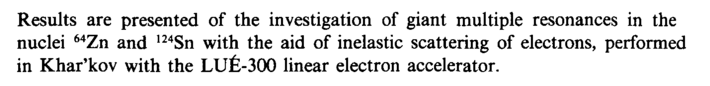 Results are presented of the investigation of giant multiple resonances in the nuclei 64Zn and 124Sn with the aid of inelastic scattering of electrons, performed in Khar'kov with the øÉ³-úïï linear electron accelerator.