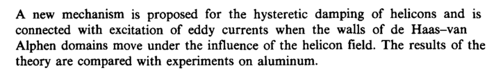 A new mechanism is proposed for the hysteretic damping of helicons and is connected with excitation of eddy currents when the walls of de Haas-van Alphen domains move under the influence of the helicon field. The results of the theory are compared with experiments on aluminum.