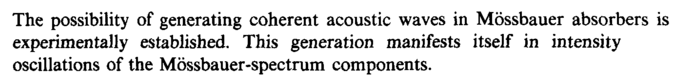The possibility of generating coherent acoustic waves in Mossbauer absorbers is experimentally established. This generation manifests itself in intensity oscillations of the Mossbauer-spectrum components.