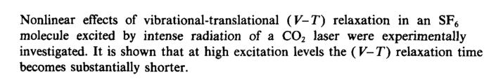 Nonlinear effects of vibrational-translational (V-T) relaxation in an SF6 molecule excited by intense radiation of a C02 laser were experimentally investigated. It is shown that at high excitation levels the ( VT) relaxation time becomes substantially shorter.