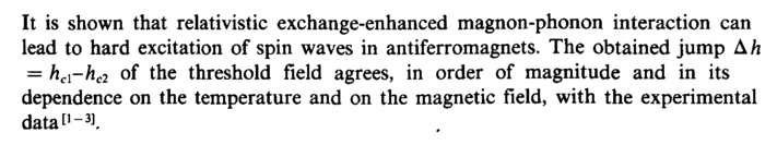 It is shown that relativistic exchange-enhanced magnon-phonon interaction can lead to hard excitation of spin waves in antiferromagnets. The obtained jump Δ h = hcl-hc2 of the threshold field agrees, in order of magnitude and in its dependence on the temperature and on the magnetic field, with the experimental data N -4
