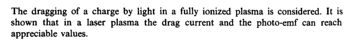 The dragging of a charge by light in a fully ionized plasma is considered. It is shown that in a laser plasma the drag current and the photo-emf can reach appreciable values.
